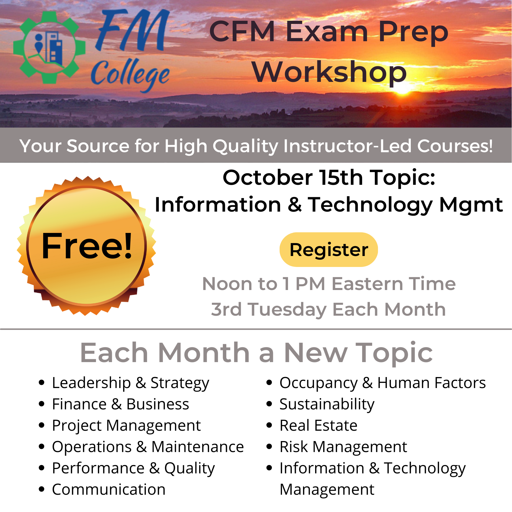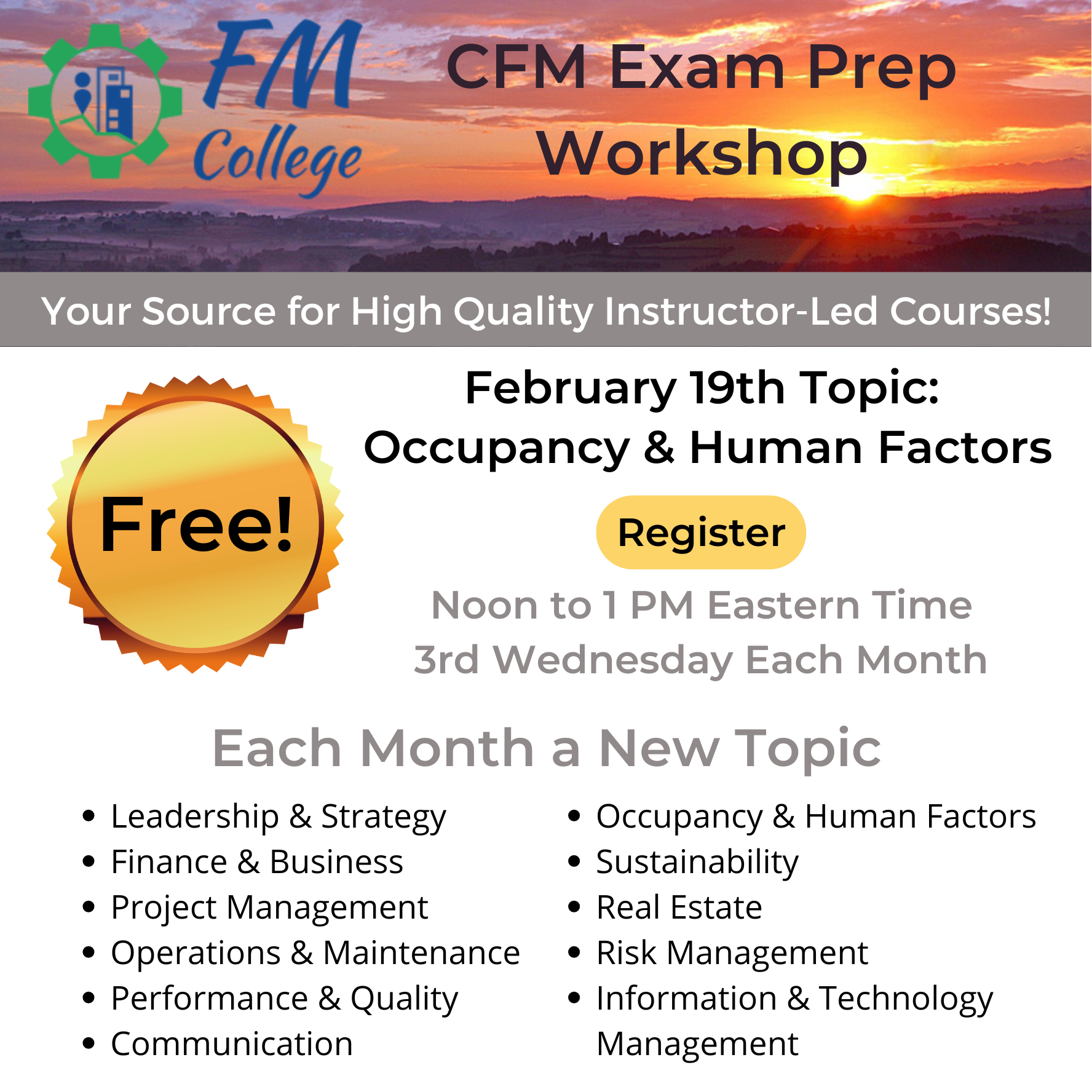 • FREE: CFM Exam Prep Workshop