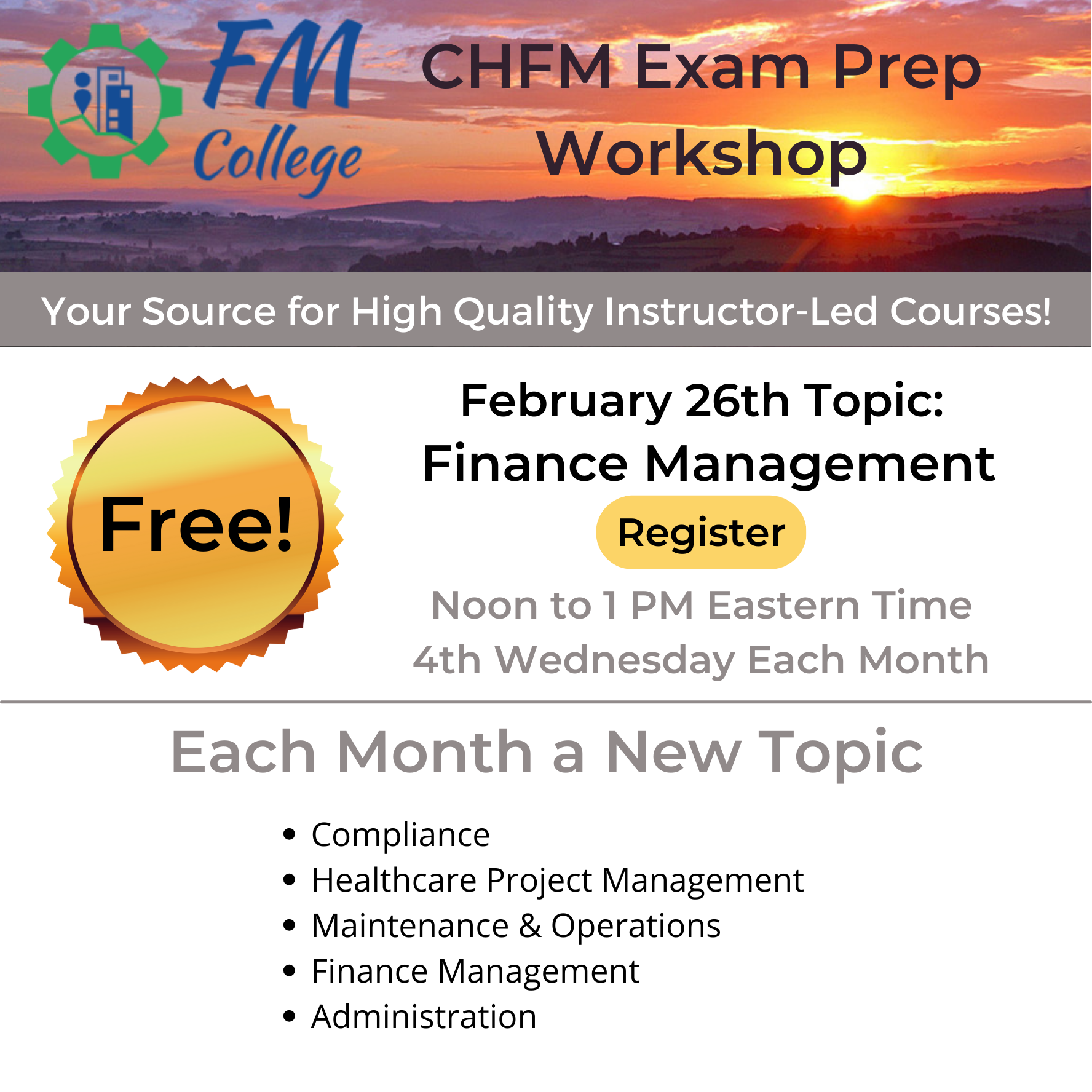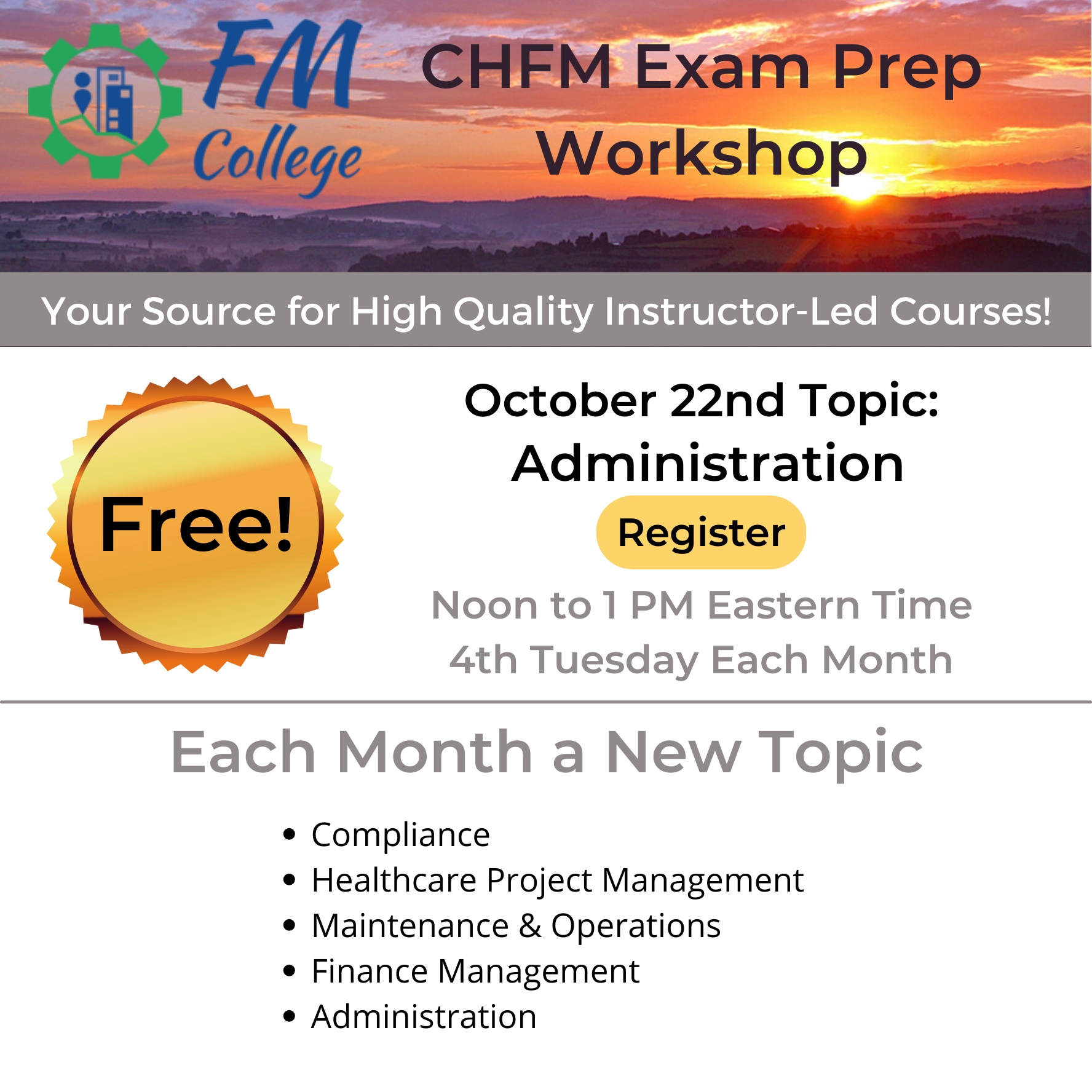• FREE: CHFM Exam Prep Workshop