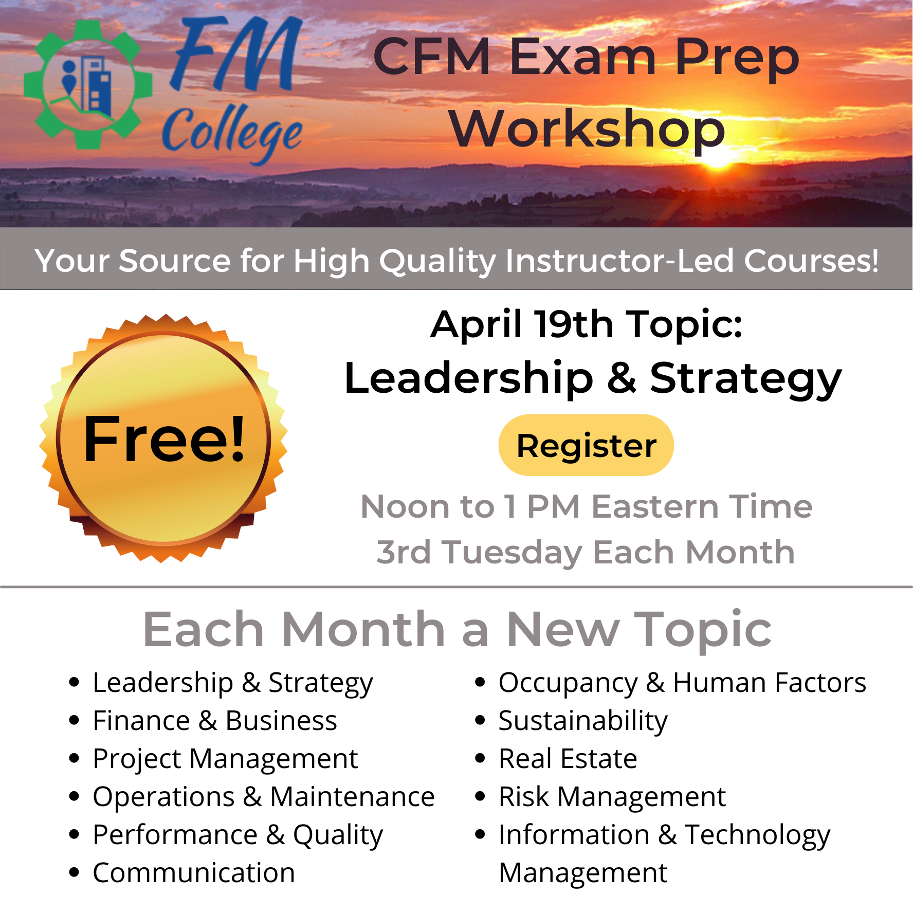 • FREE: CFM Exam Prep Workshop ~ Americas